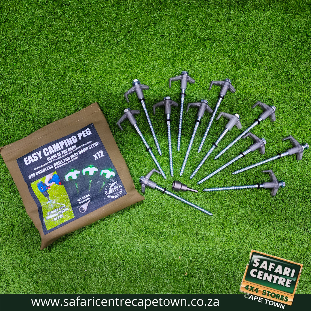 No need to hit pegs into the ground with a hammer. These easy-to-set and easy-to-remove camping tent pegs just require a cordless drill to quickly and effortlessly drive these glow-in-the-dark pegs into the ground. No more tripping over guide ropes at night with these fantastic camping must-haves.