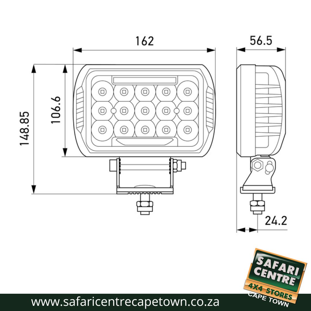 - The robust die cast aluminium housing is equipped with cooling fins to dissipate heat from the high-power LEDs.