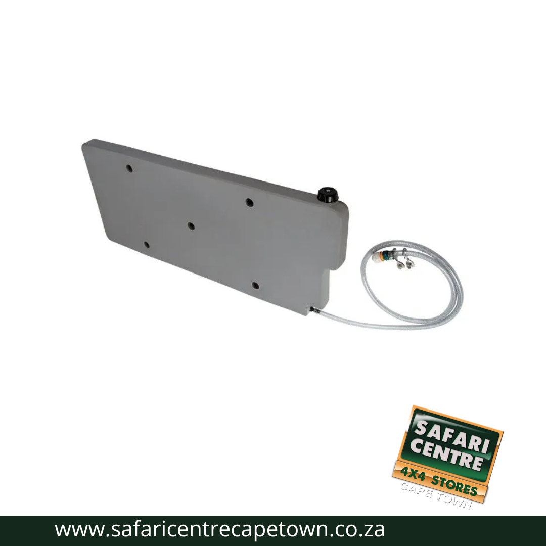 A 40l (10.6gal) water tank that is perfect for showers, drinking, and cooking. This slim upright water tank fits inconspicuously behind the rear seat of your vehicle.