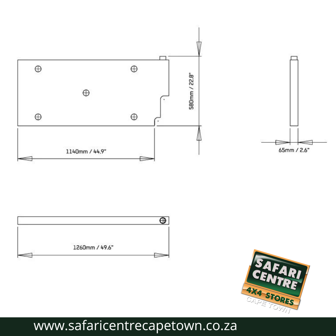 W 1260mm (50″) x H 550mm (21.7″) x L 65mm (2.6″)